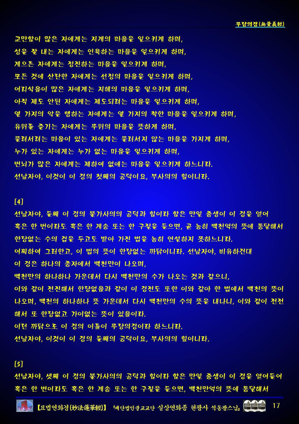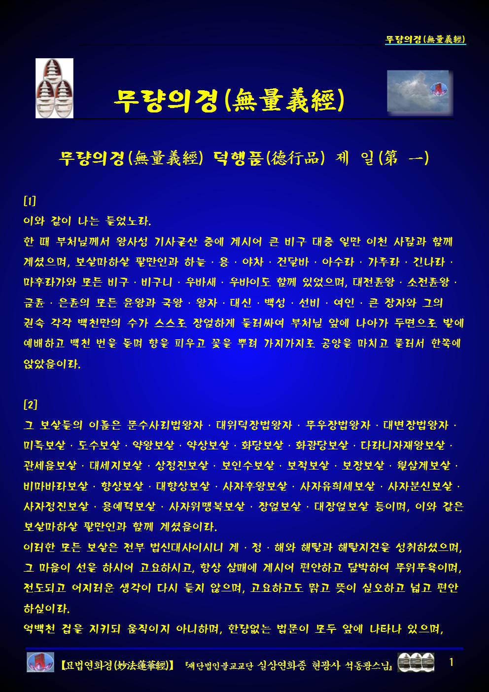 묘법연화경(妙法蓮華經) [무량의경(無量義經) 덕행품 제일 설법품 제이 십공덕품 제삼 ] (실상연화종 현광사 석동광스님).pdf