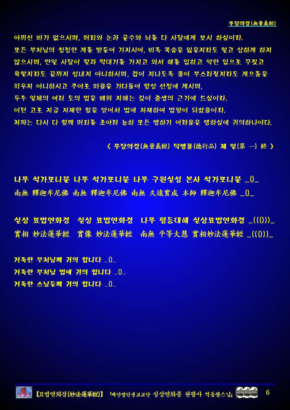 묘법연화경(妙法蓮華經) [무량의경(無量義經) 덕행품 제일 설법품 제이 십공덕품 제삼 ] (실상연화종 현광사 석동광스님).hwp